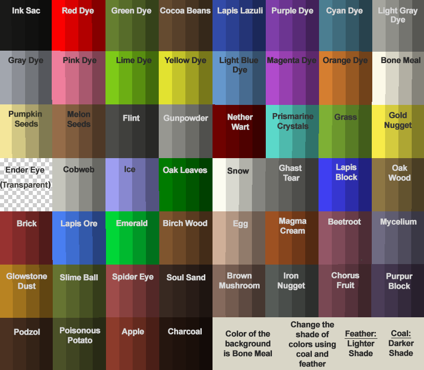 There are two special tools: Feather and Coal. Feather lightens up the color while coal darkens it. This is how you achieve the 4 different shades of each color.